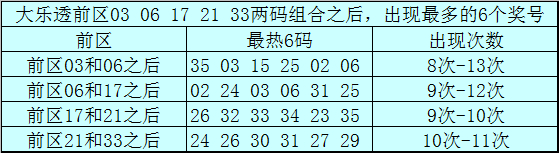 前区两码17和21和之后推崇最热的6个号码为:26、32、33、34、23、35;