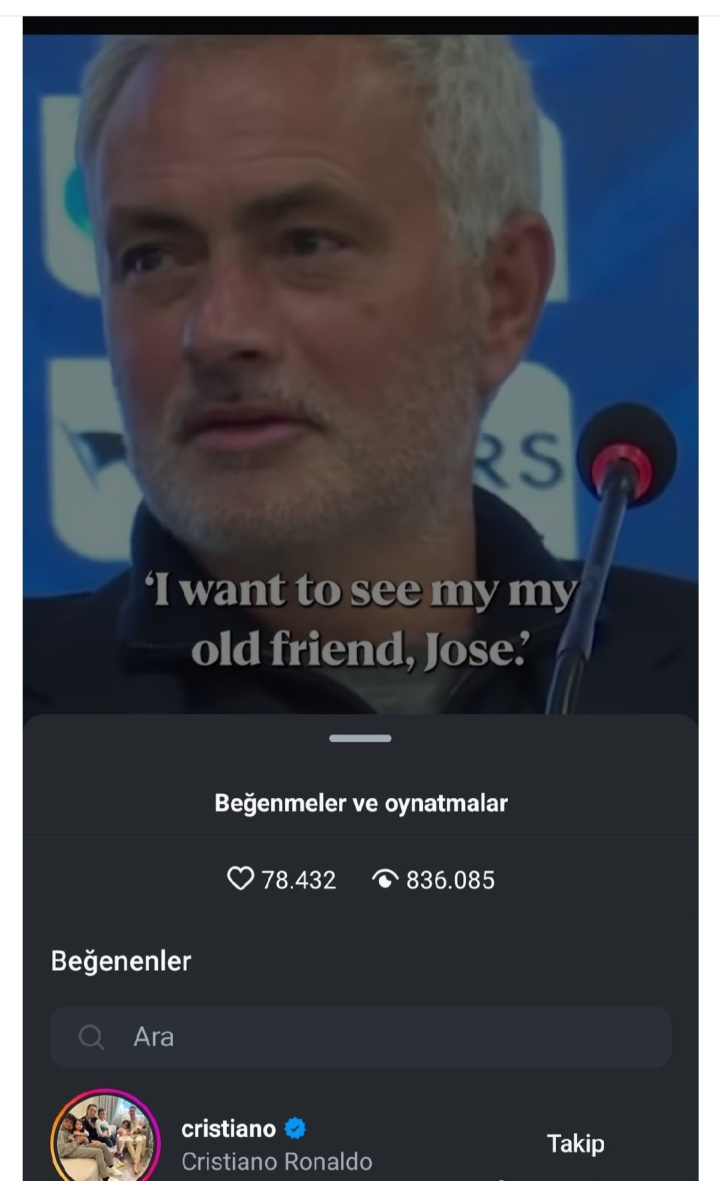 克里斯蒂亚诺·罗纳尔多点赞了一段视频,即是何塞·穆里尼奥在土超赛前新闻发布会上说的一段话,这大约是师徒二东说念主,时隔十年之后再次互动,这中间有着太复杂的脸色纠葛,以及化不开的恩仇情仇。